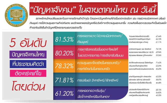 สวนดุสิตโพล : ผลสำรวจสภาพปัญหาของสังคมไทย เมื่อ ๓๐ เมษายน ๒๕๖๐, มติชนออนไลน์ ๑๑